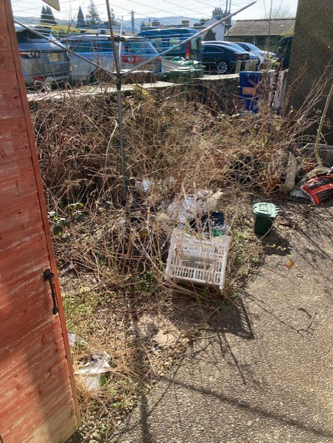 Mr Fawcett suffers with his health, this has unfortunately led to him being unable to keep up with the maintenance of his garden. Wynne Parry from our maintenance team and Arwel Williams our area warden worked together in order to arrange a clean up day for Mr Fawcett.